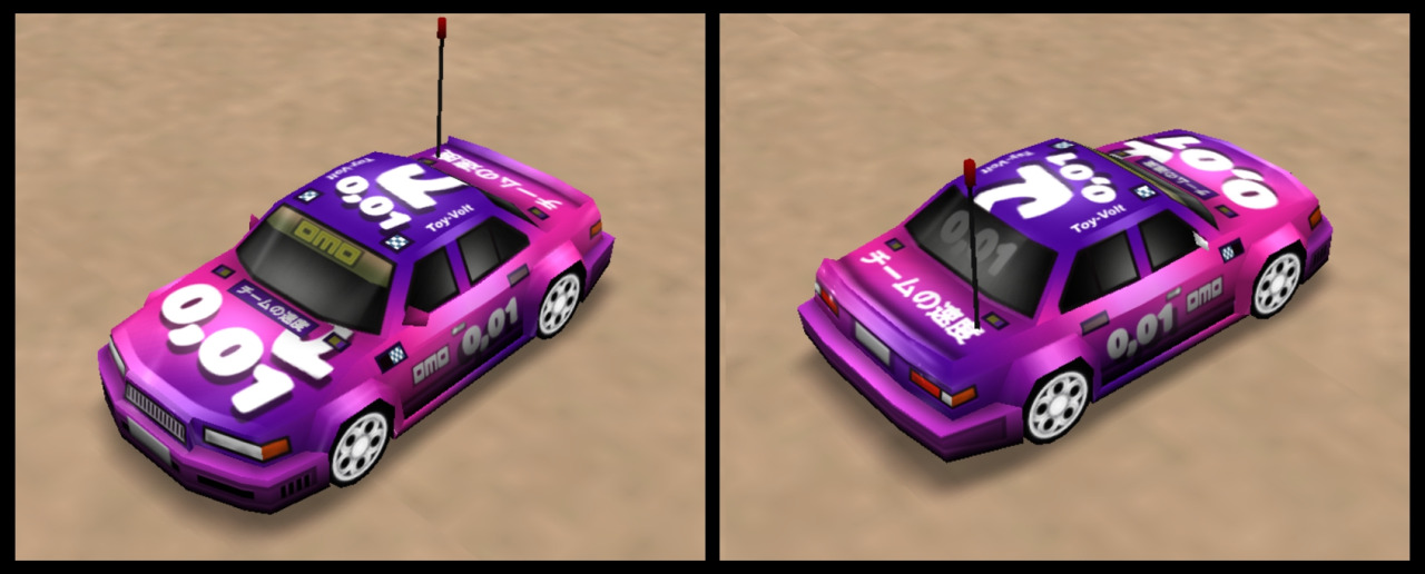 - The original idea was to make a car that had the weight set to 0.01 (this is also the reason for the name), but after finishing the model/texture work and starting working on the parameters, i quickly realized that setting the weight to 0.01 makes the game go crazy and the car go fly in the sky lolz. So in the end i just used the smallest possible value that didn't completely break the game or made the car impossible to drive, and it turned out to be 0.5 (car is still basically a joke car, I'd be really surprised if someone can actually use this in a competent way lolz). Anyway, even if my original plans for this car's parameters failed, i still decided to keep 0.01 as a name, guess you can now interpret it as: "only the 0.01% of racers can actually drive this thing". Of course to compensate for the atrocious handling caused by the super low weight, this car has overpowered speed and acceleration for the rookie class.