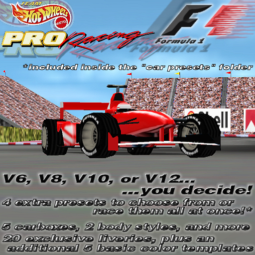 This actually is a redo of Gogazman's Ferrari F399 conversion, but I discovered this is as a Manmountain repaint titled "Jaguar F1" from 2005 (but downloaded it from the 2011 F1 pack, which featured the exact same repaint as the Jaguar F1 listing). This may not be fully conventional, but I tried my best to make it able to "fairly" compete with other Super Pro cars while making it feel like a real(ish) Formula 1 car.