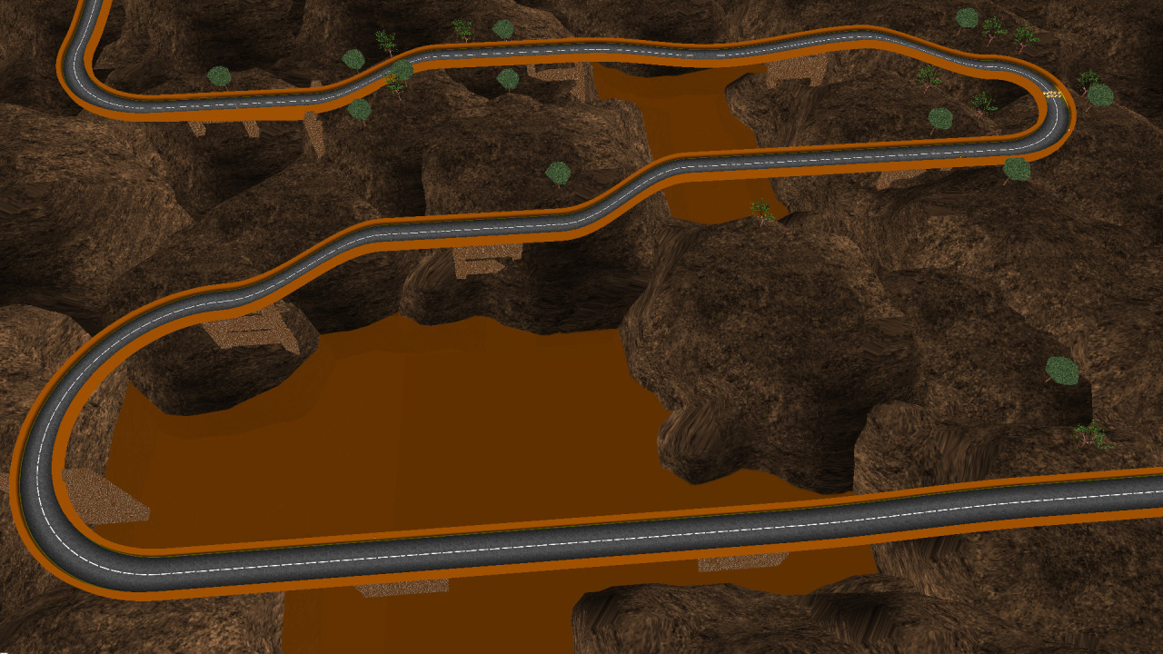 Track was made in the year 2020 and updated in 2021. This is the 1st canyon track that was made in the year 2020. The track contains different up/down levels depending zones, panel indications, lakes, trees and traffic signals.