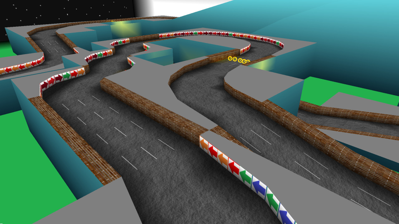 A lego track made in the year 2011 which in some zones contains bridges, ramps, pipe tubes and some chicanes with different ups and downs. Apart there's some panels with custom brand logos on the track.