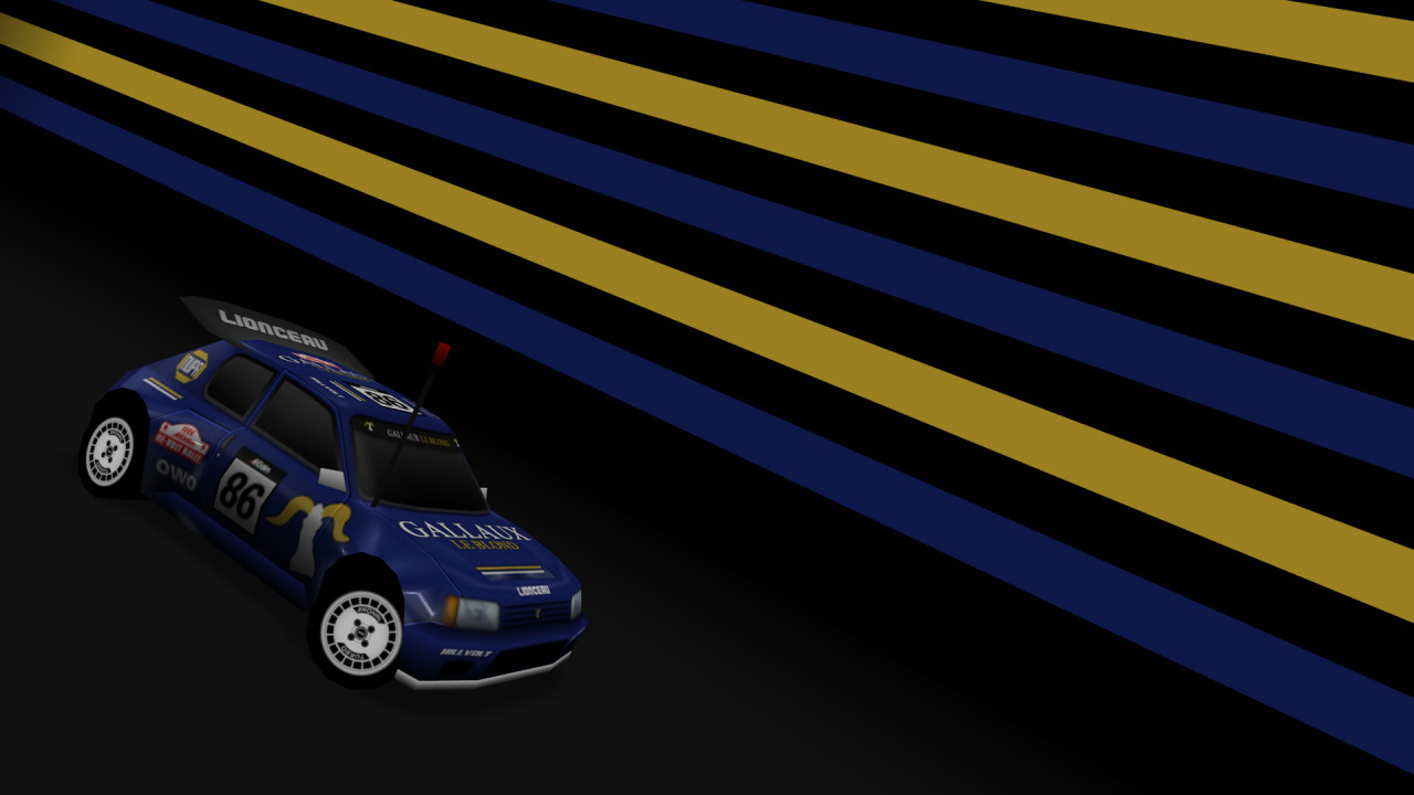 Here’s my entry for the Re-Volt World Multi Class Bash! This car is a remodel of the Peugeot 205 T16 V2 made by MOH, with a few tweaks: longer body, slightly wider fenders, new rear wing and hood intake. Being based on Group B rally cars, it’s very light and fast, but it’s also a bit slippery in turns. 3 liveries have been made for this car, each one resembling color schemes and shapes used by real teams who competed with this beast back in the time, and a paintkit for some new ones is included too!