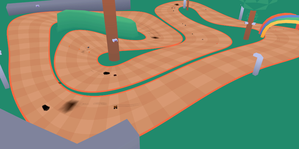 The second would be to switch the track to day mode and add a few simple, colorful decorations, in the same spirit as the trees or the building.