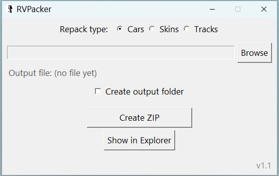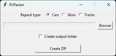 RVPacker is a small portable tool to quickly repack cars, skins, and tracks into the correct folder structures used for uploads on the site.