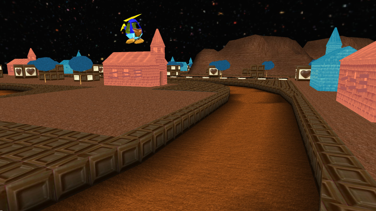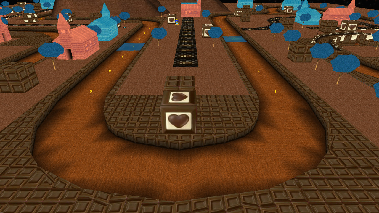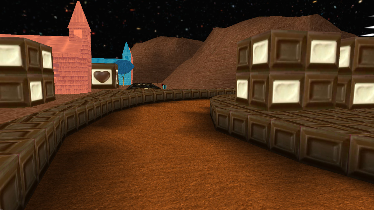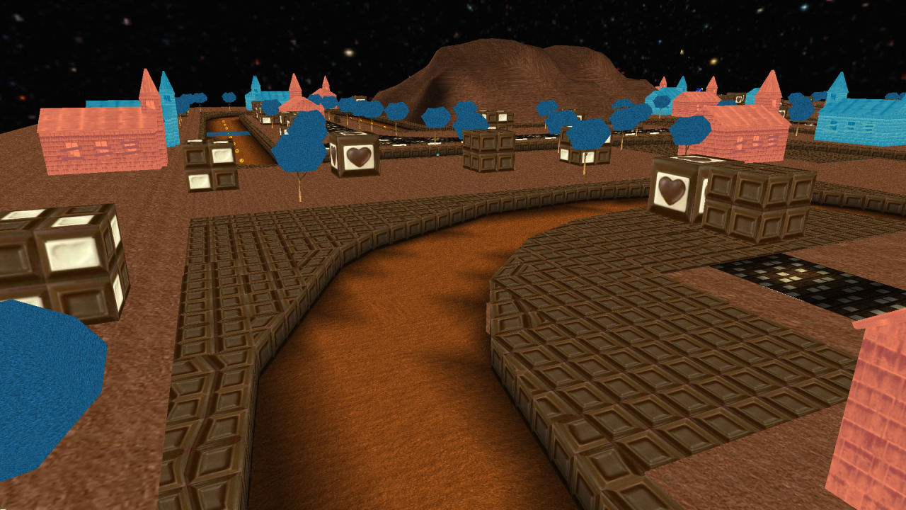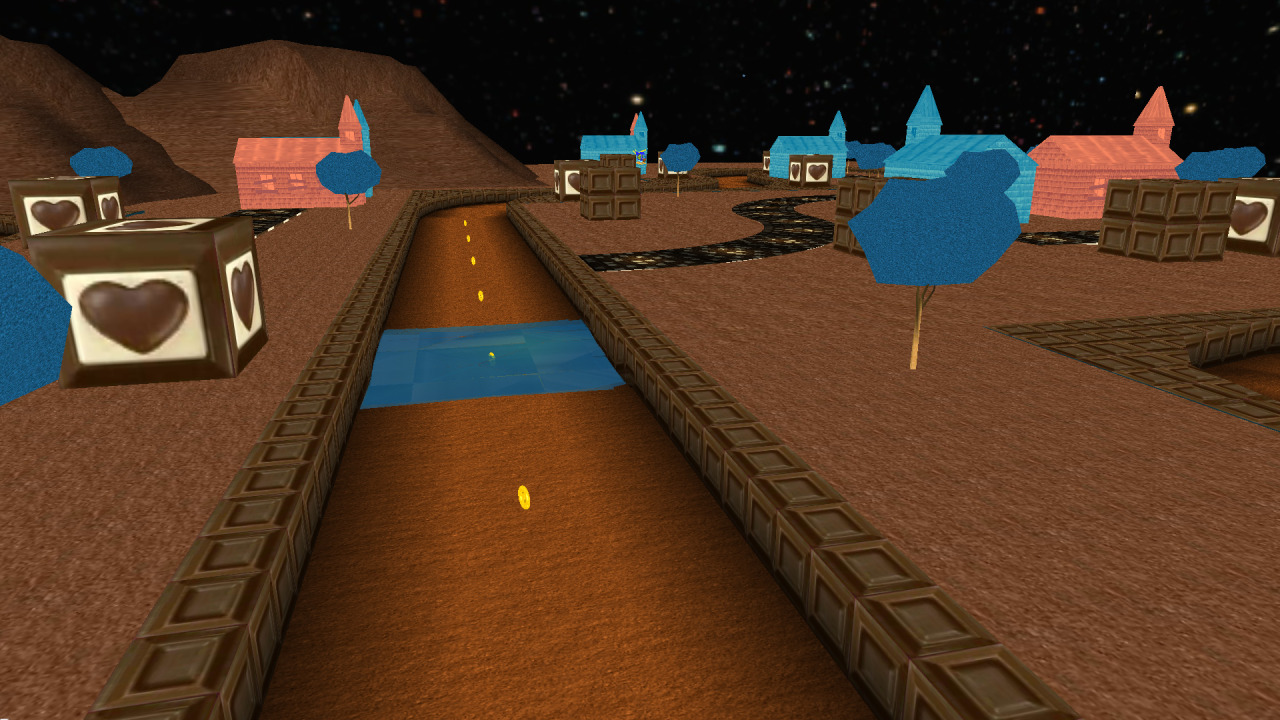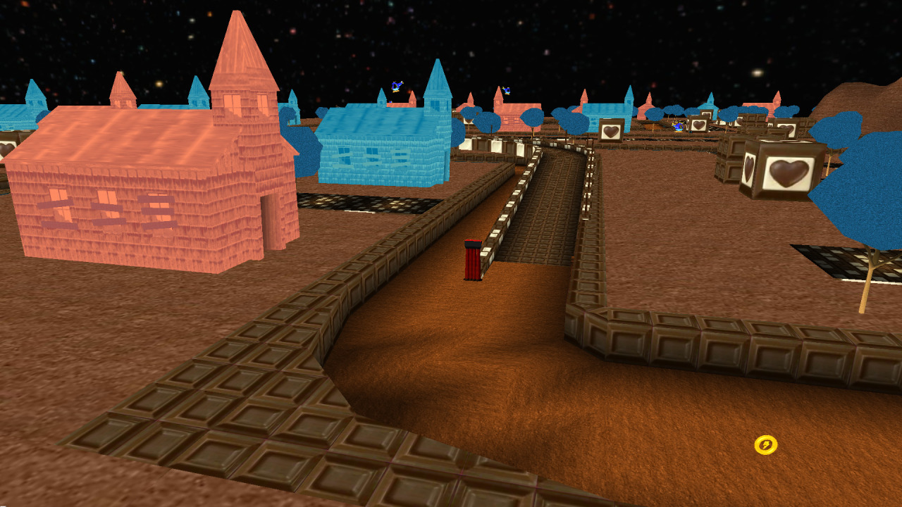 This is a lego track based on the Sweetland style. The idea was creating a similar place based on Hansel and Gretel storybook but I did a different zone. Apart there's coloured old buildings, trees, planes from Toy World level, water on the bumps, boxes with various chocolate styles, paintpots (such as barrels) and a ramp road surrounding the track.