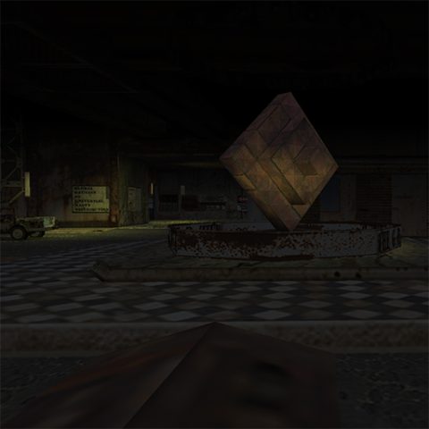 You start the race under a non-functional car elevator and drive throught the different track areas. Like an x-ray chamber, the giant parking lot, past the disused mine railways and the lost warehouses.